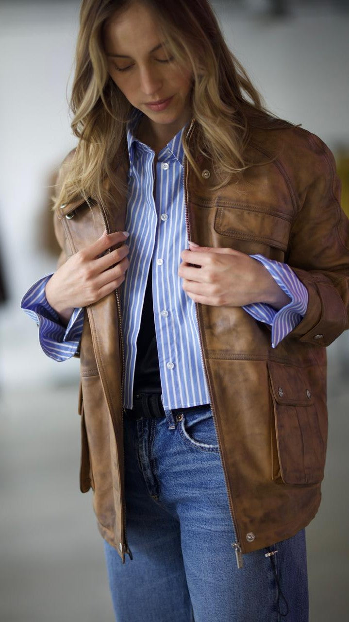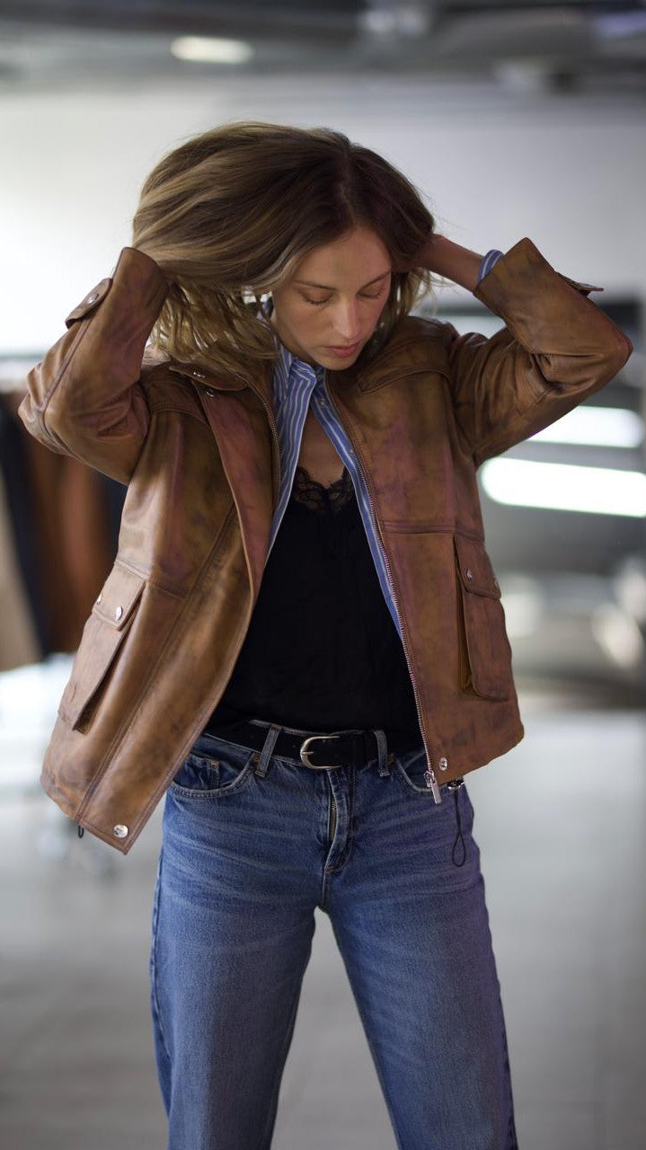 Chaqueta Cuero Manchester Camel claro/Negro Wax