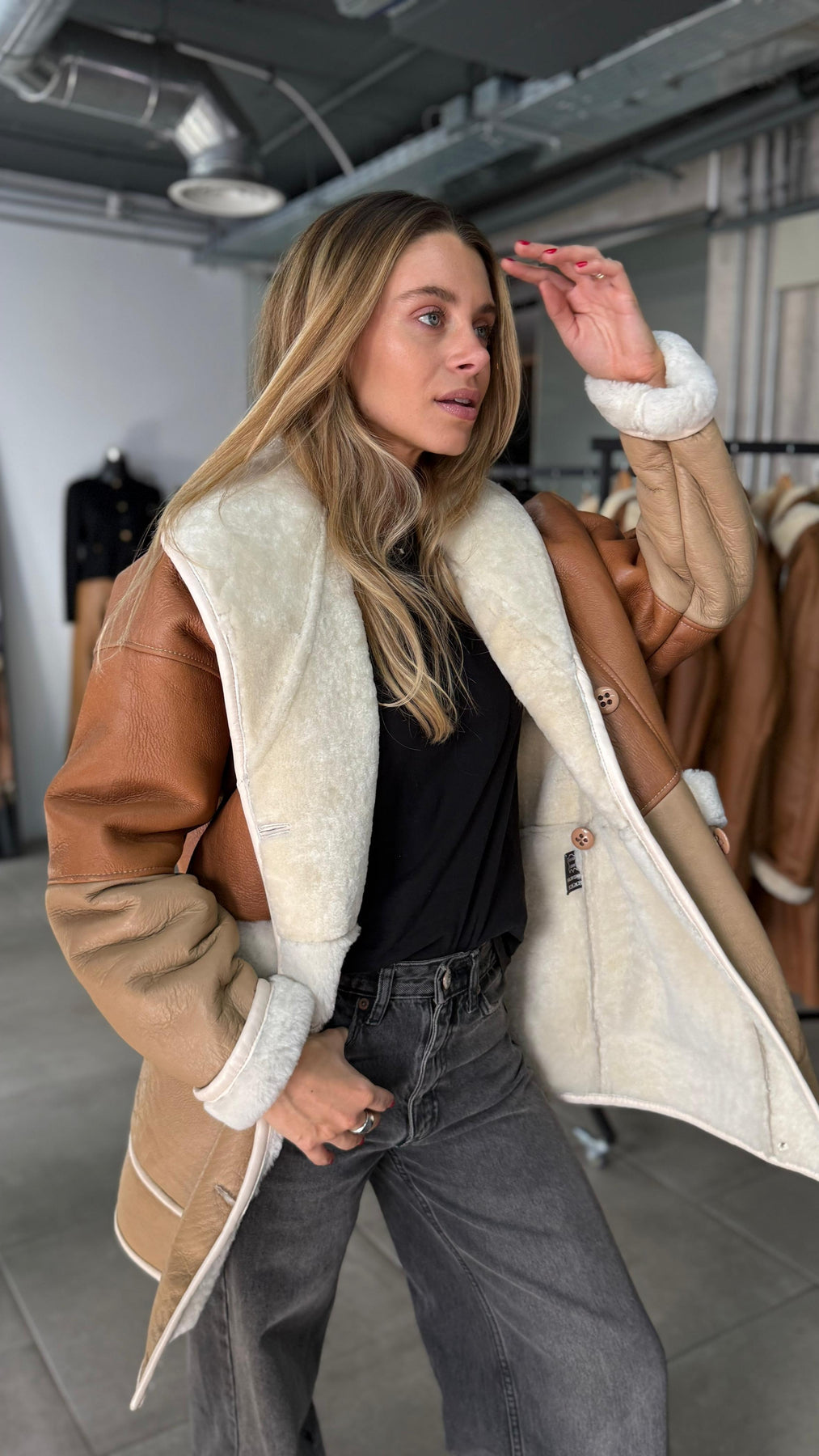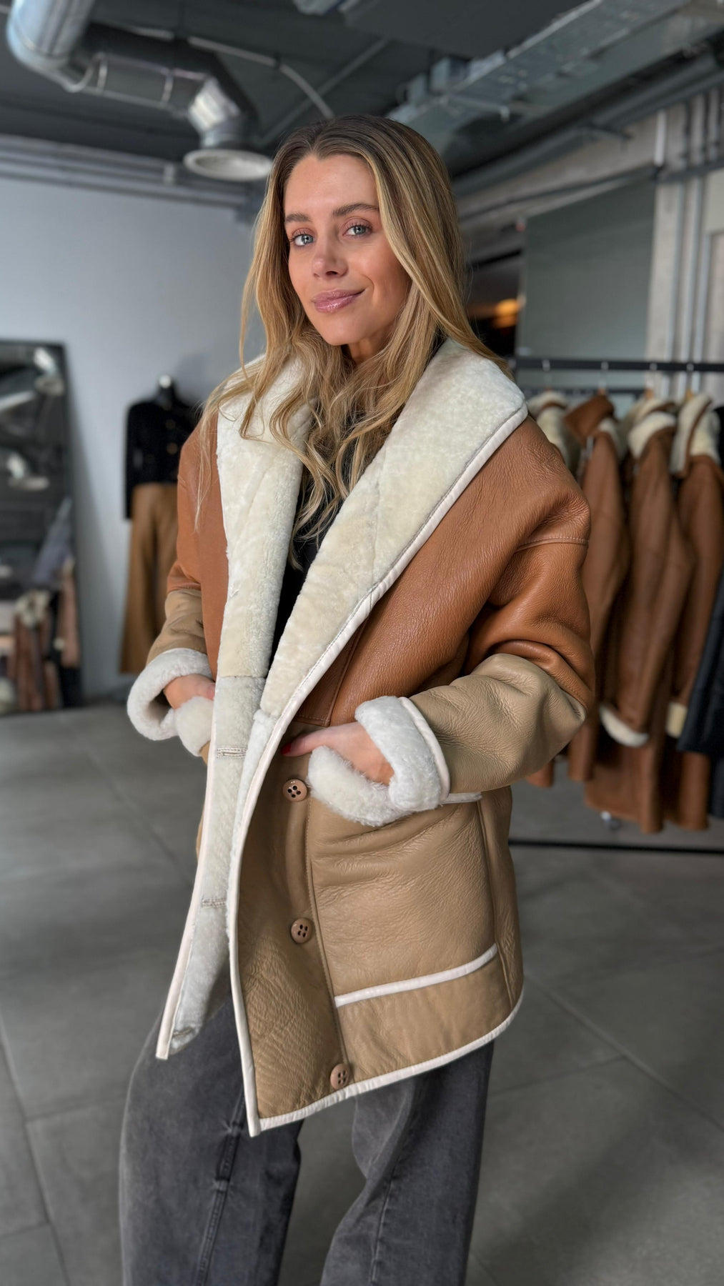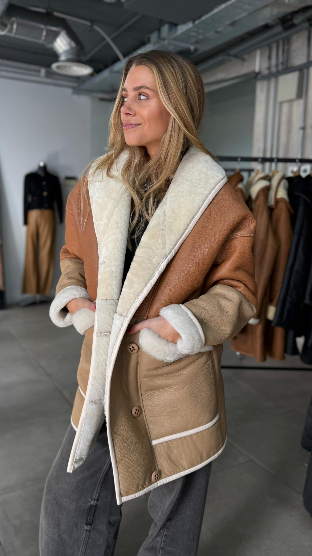 Nuestro Dublín Oversize, está confeccionado 100% por cuero de oveja, cuero en su exterior y chiporro de lana en su interior, ideal para los meses mas fríos del año.