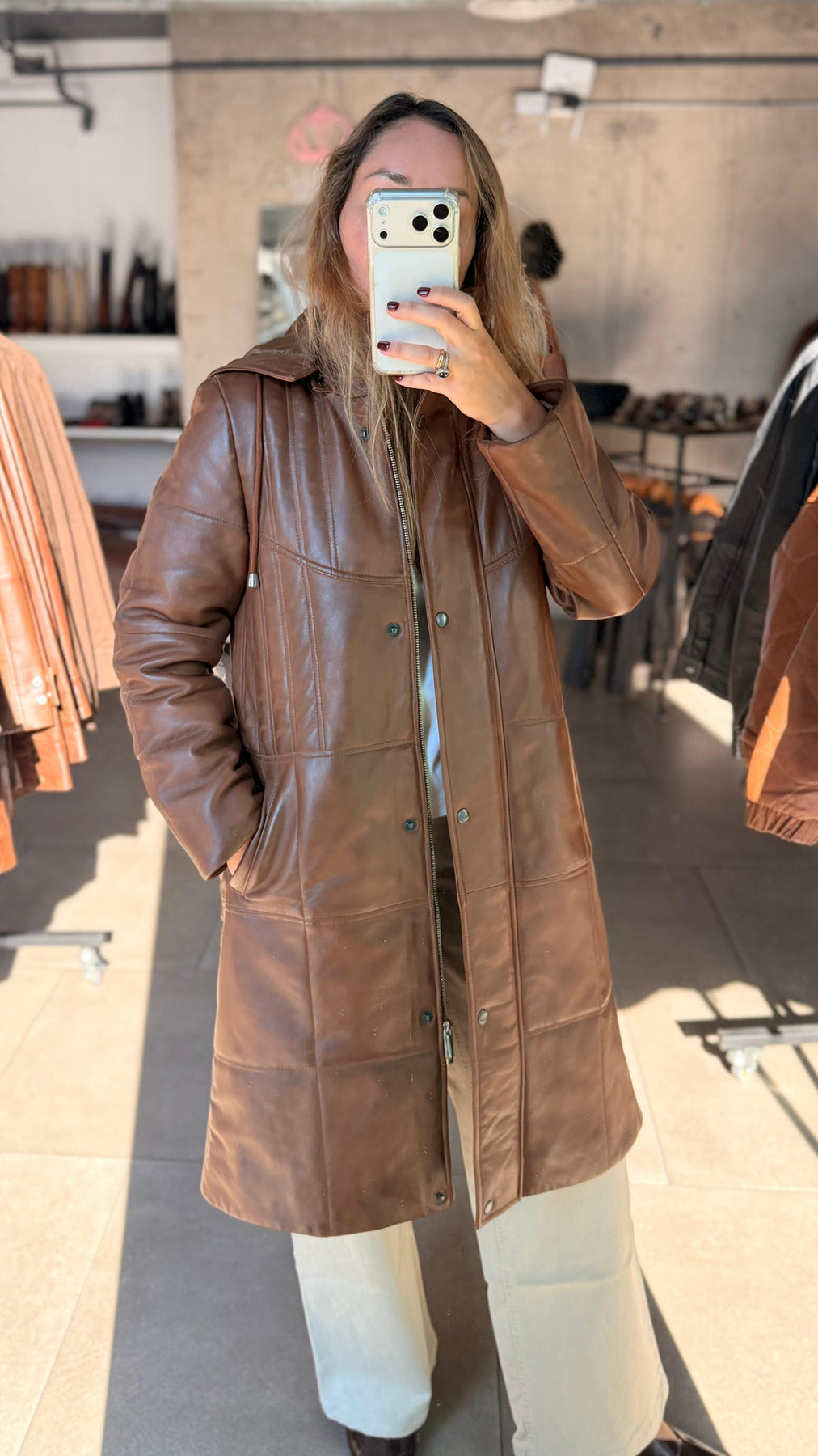 Abrigo Cuero Escocia Camel
