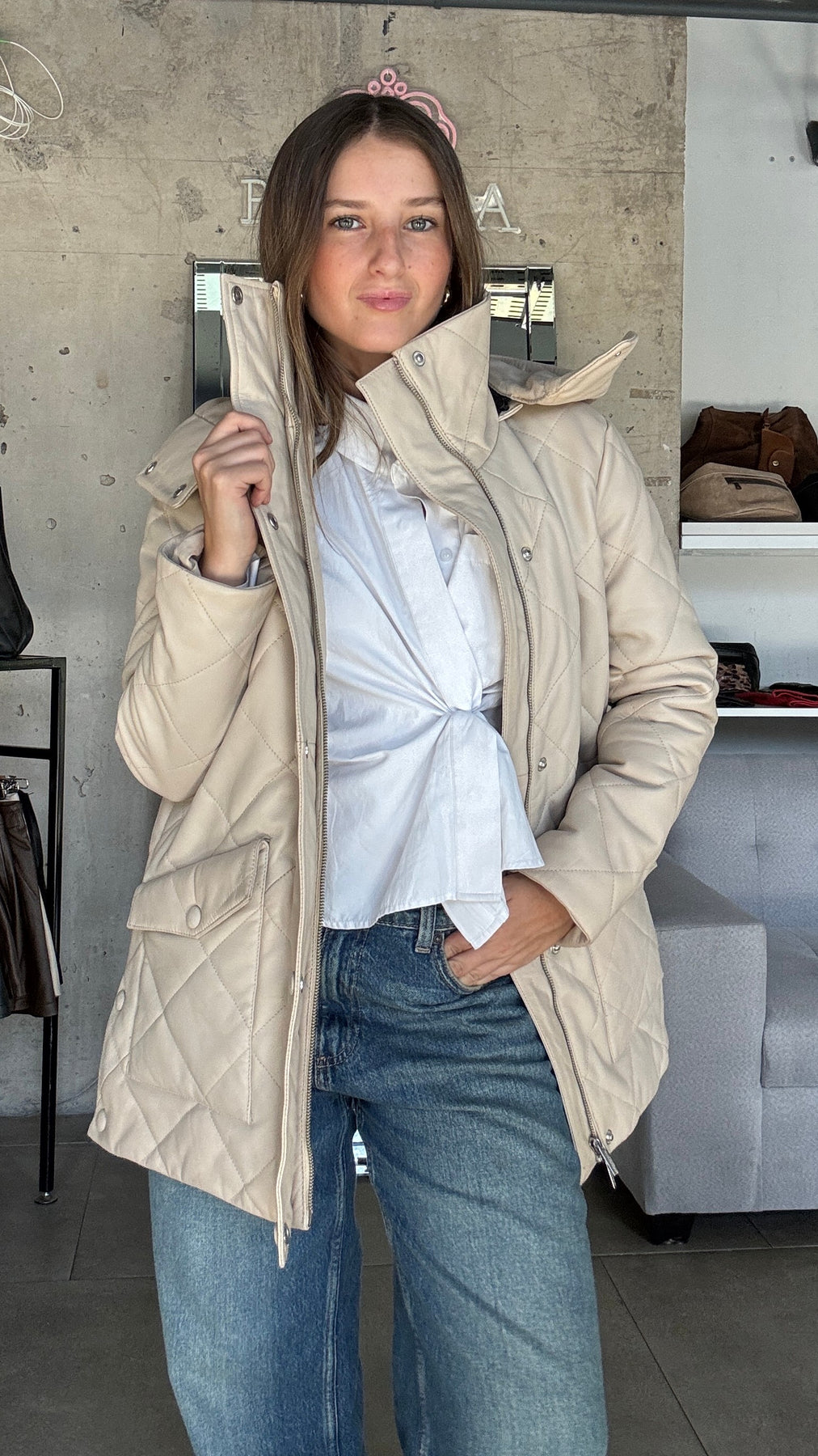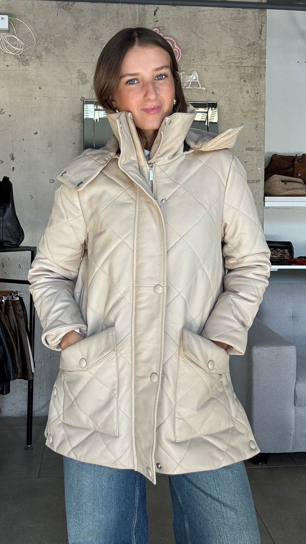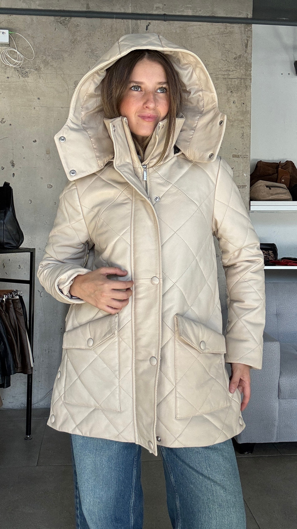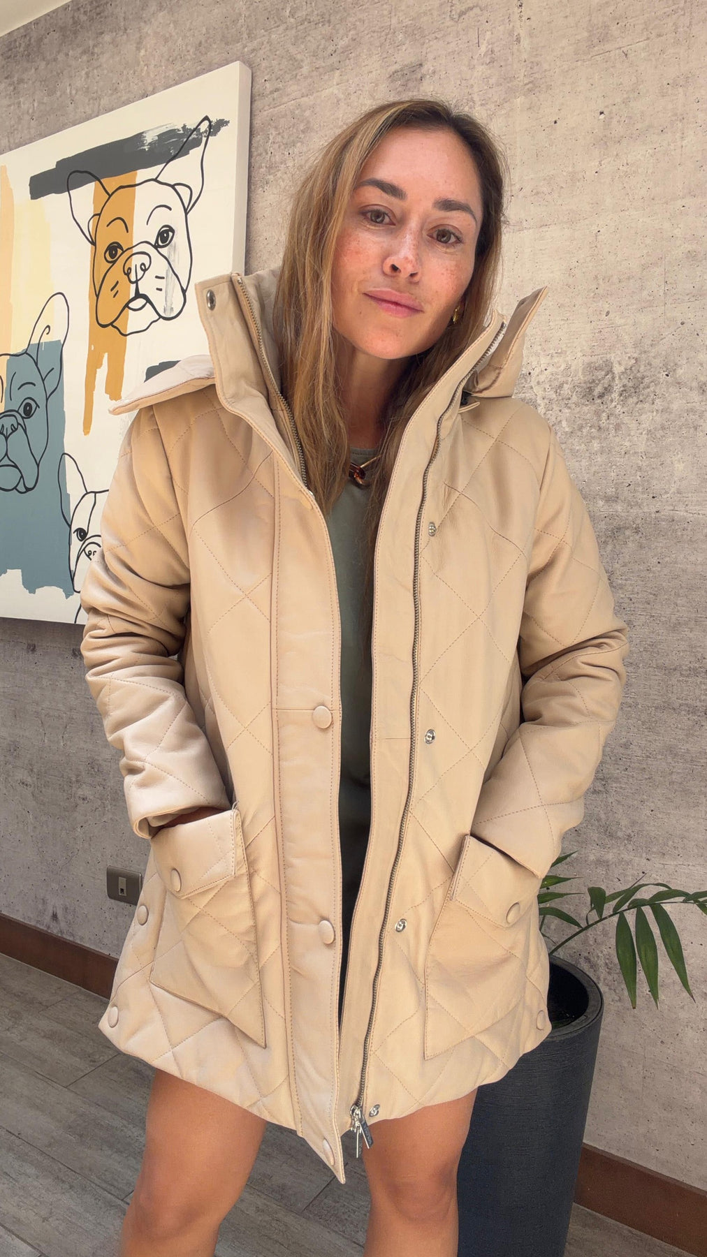 El modelo de parka Laos, está confeccionado en 100% cuero de oveja en su exterior y cuenta con un forrado de poliéster en su interior. Es una prenda de largo bajo la cadera de corte recto y amplio, que permite usar varias capas de ropa debajo del abrigo. Puedes disfrutar de este abrigo durante todo el año, adaptándose a todas las temporadas del año.
