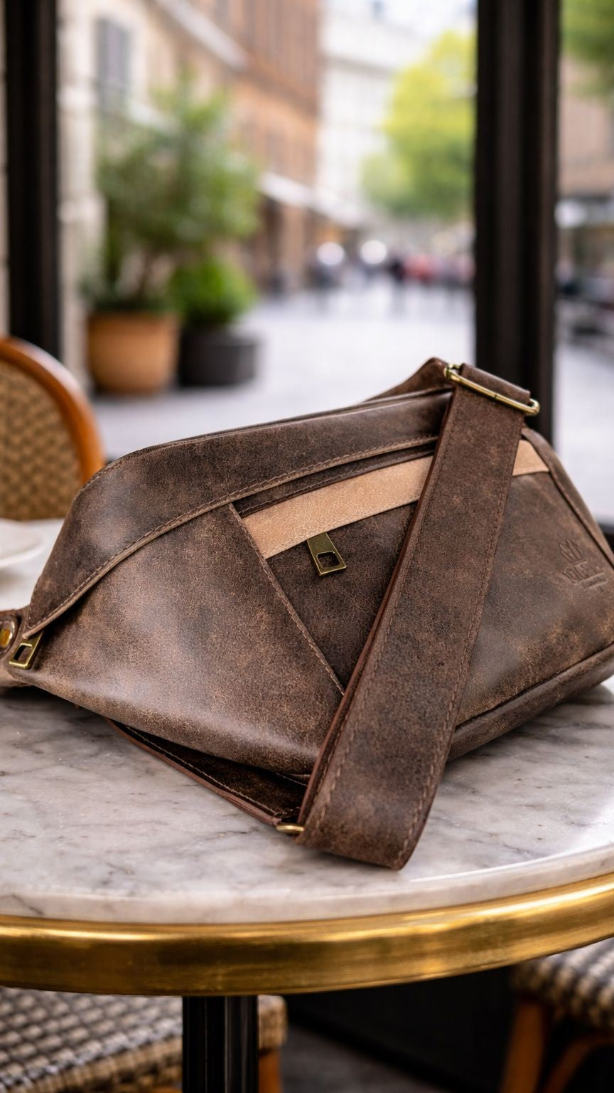 Riñonera/ Bandolera Cuero Atenea Café Craquelado