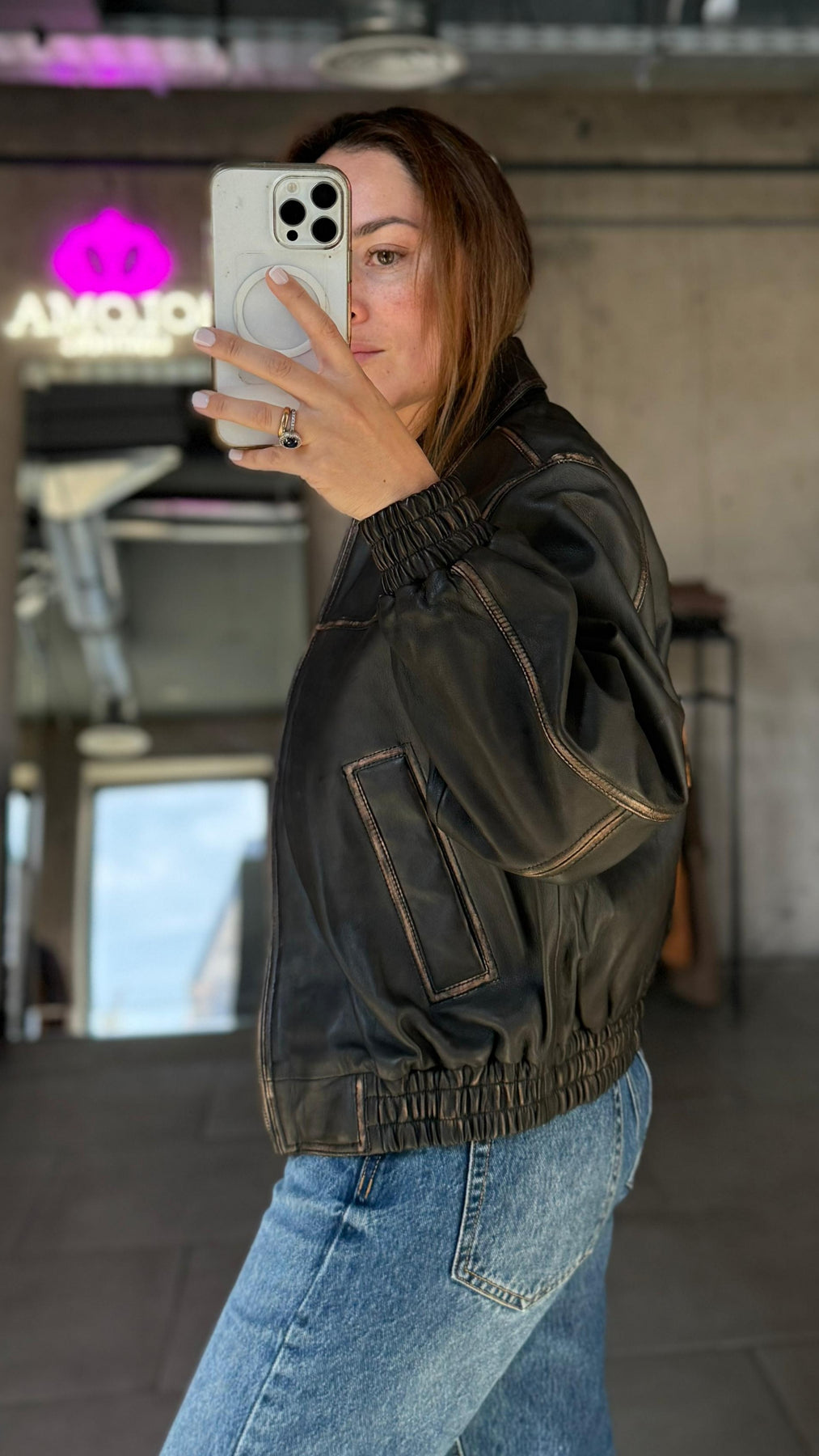 Chaqueta Cuero Michigan Chocolate Desgastado