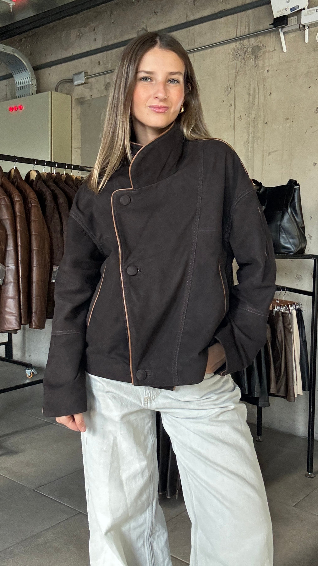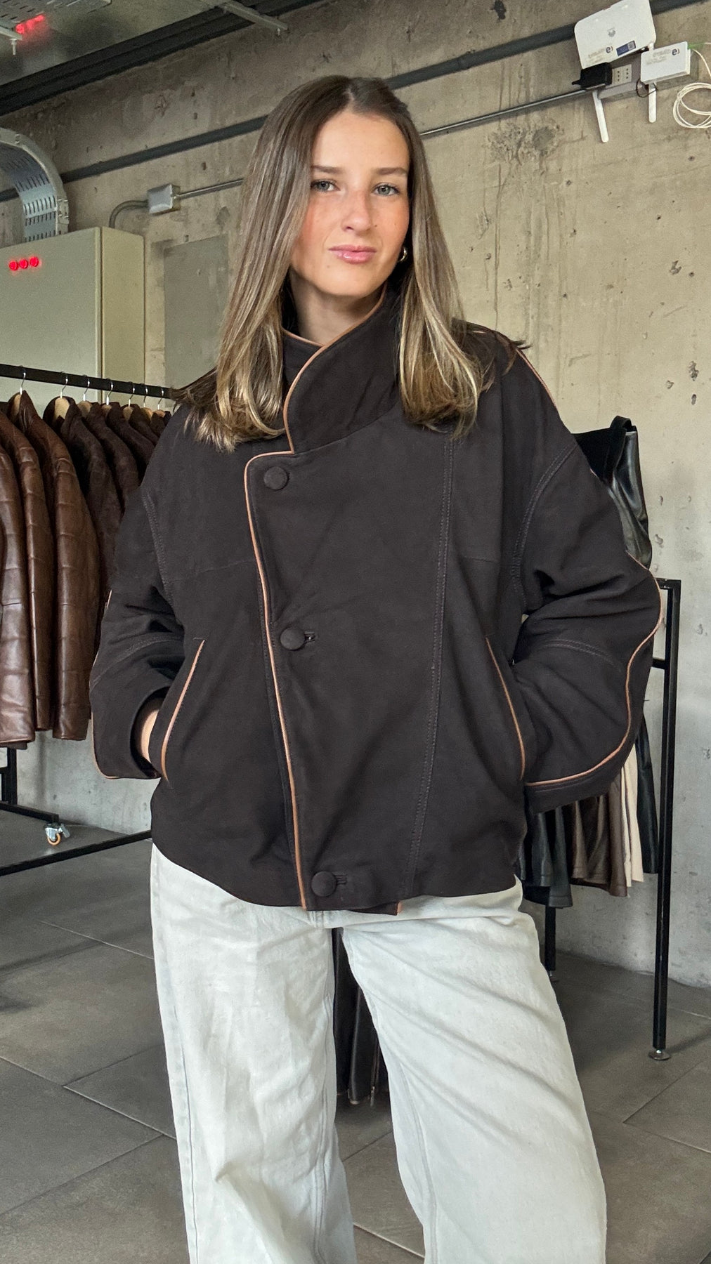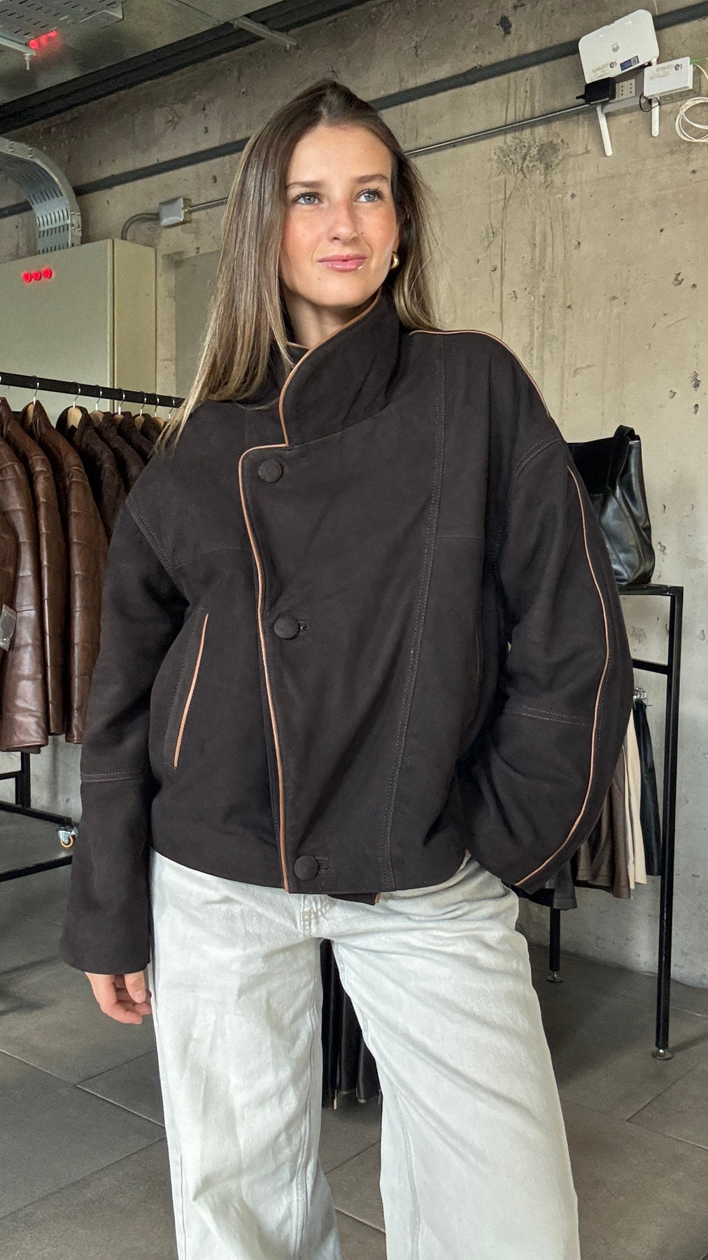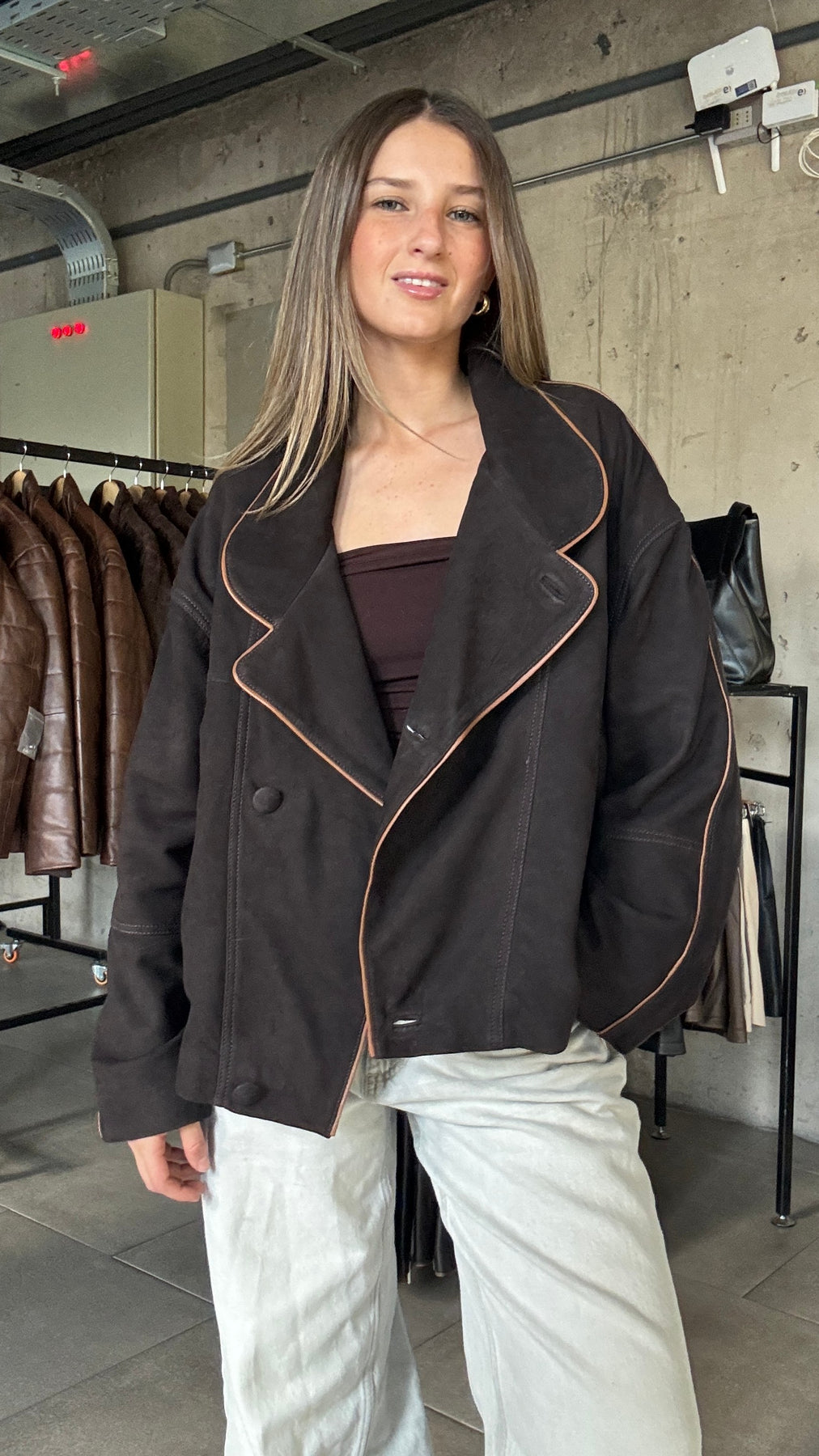 Chaqueta Nobuk Puglia Chocolate Oversize