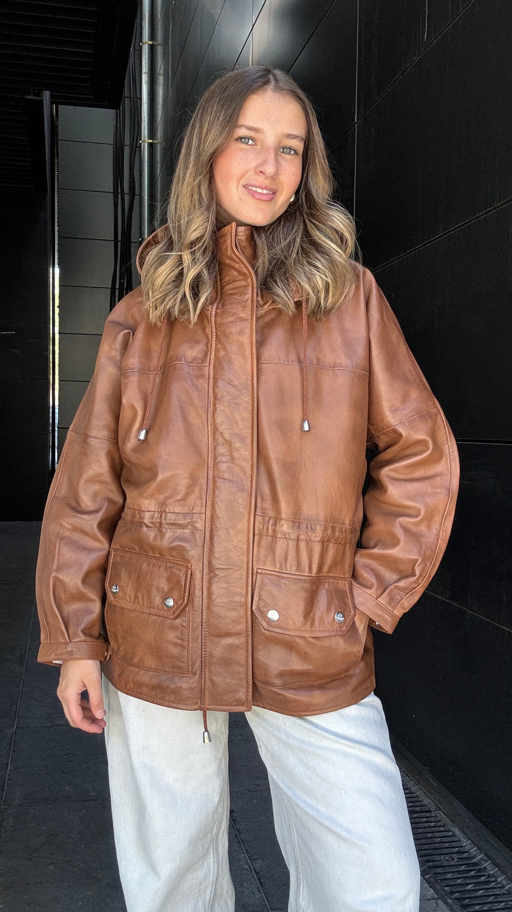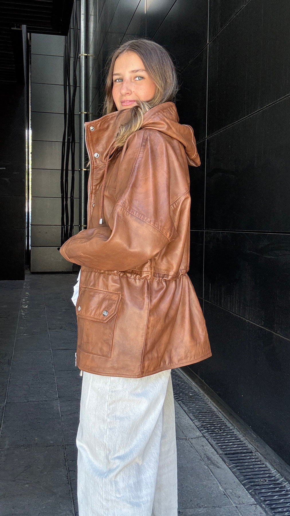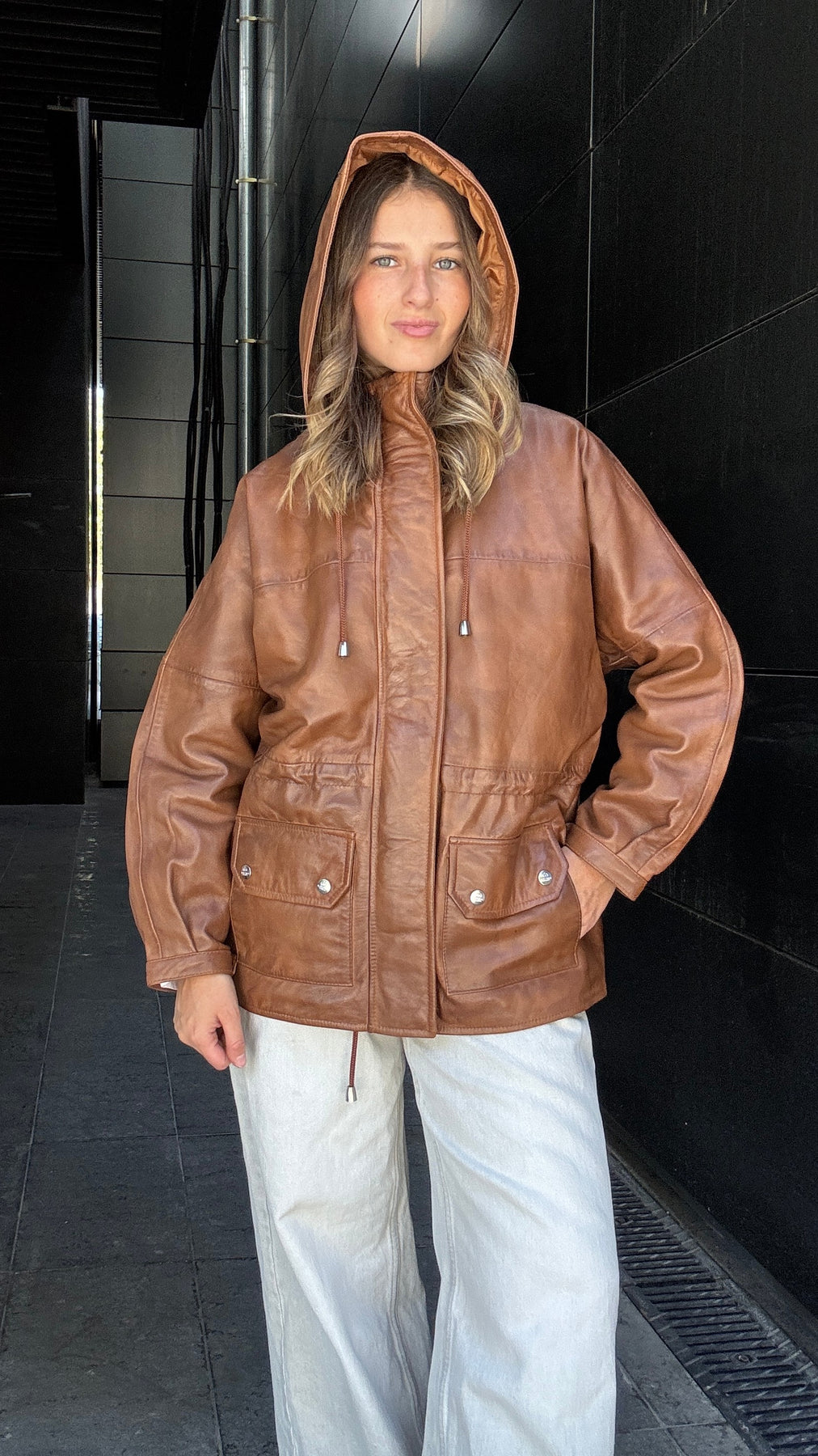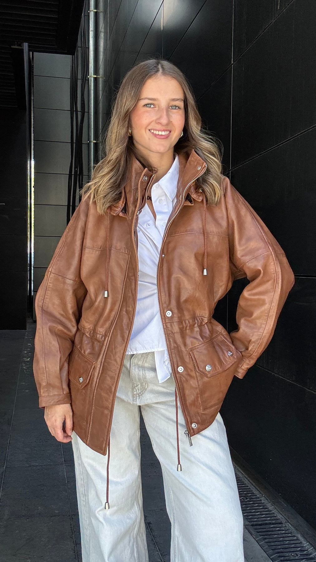 Chaqueta Cuero Gante Camel Wax