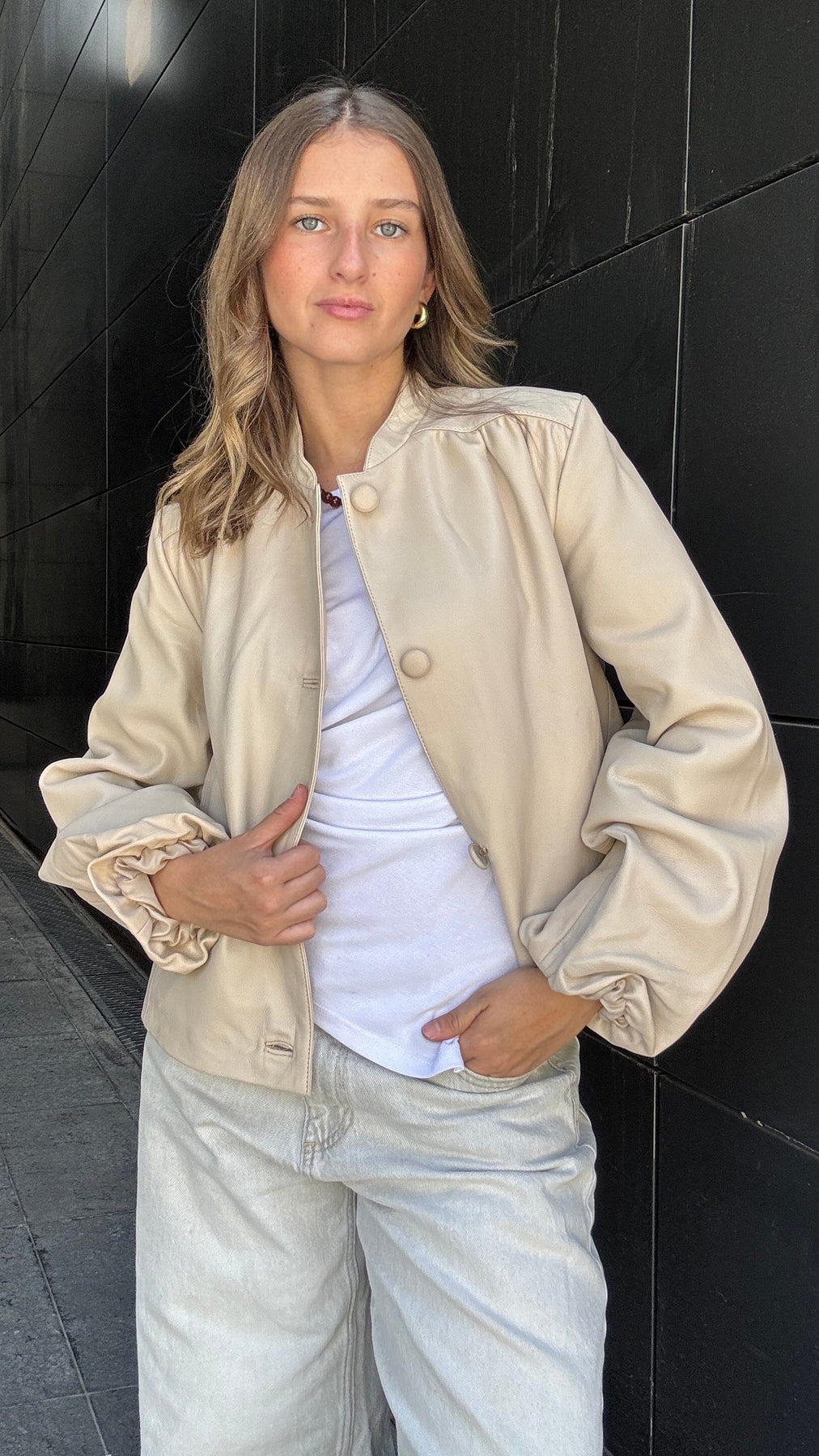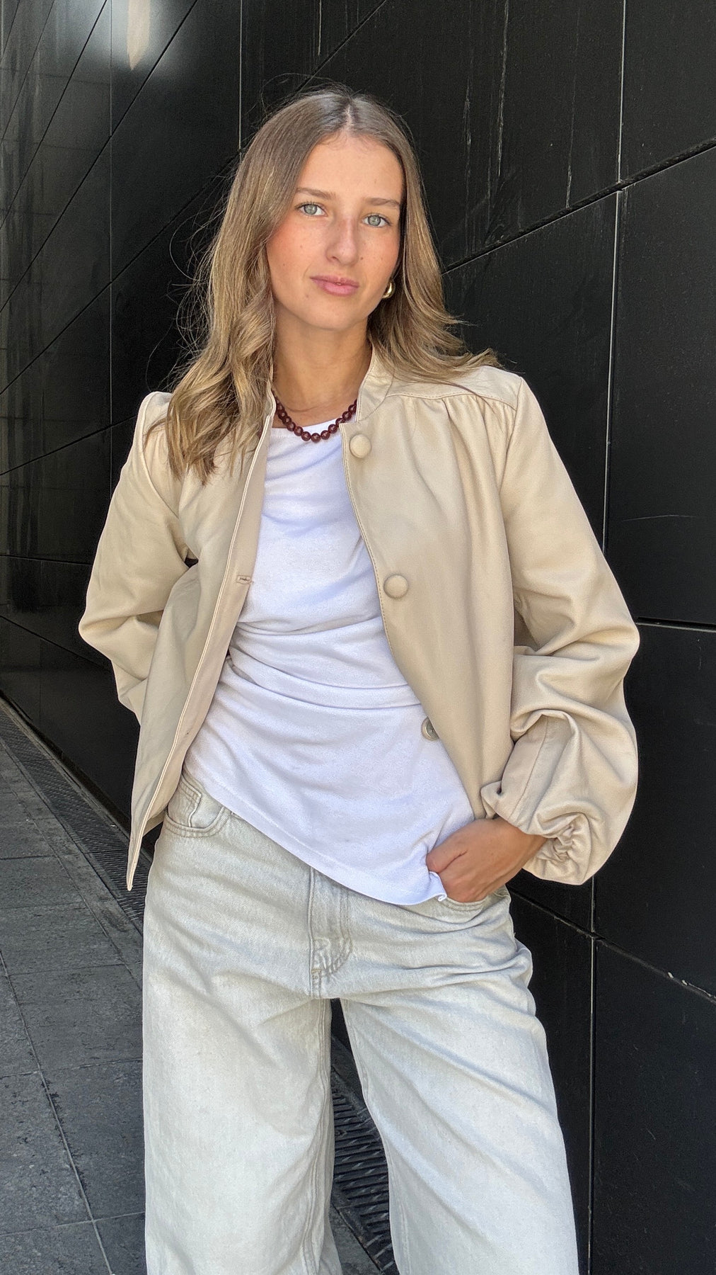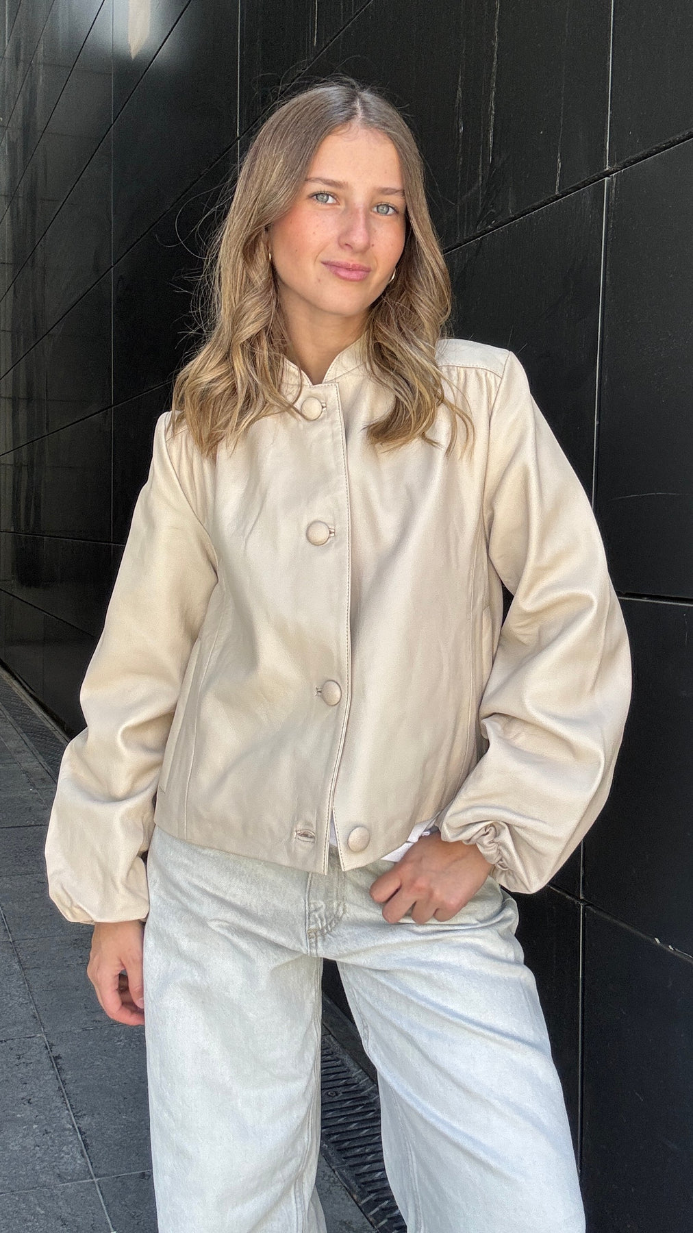 Chaqueta Cuero Kara Hueso