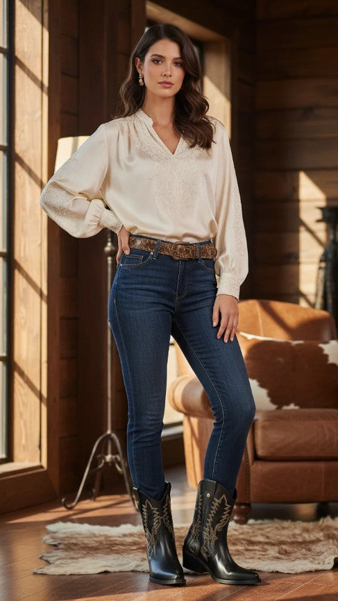 Botín Texano Crosby, un diseño artesanal con carácter, que mezcla inspiración western con un toque femenino y actual. Cómodo, firme y seguro.